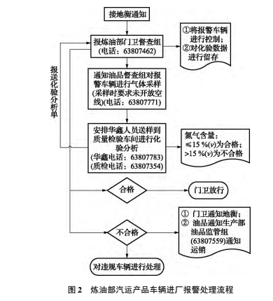 (3)管理手段控制。制定 《過(guò)衡十不準(zhǔn)》,約束司機(jī)行為。通過(guò)數(shù)據(jù)比對(duì),篩出受懷疑車(chē)號(hào),建立黑名單、灰名單。通告司機(jī)已被關(guān)注,警示司機(jī)不要再違規(guī)。與煉油部、烯烴部、化工部等作業(yè)部,以及銷(xiāo)售中心、物資裝備部等部門(mén),共同理順計(jì)量流程和票據(jù)流轉(zhuǎn),將遞送給不同部門(mén)的計(jì)量磅單按不同顏色區(qū)分,同時(shí)和作業(yè)部門(mén)禁相互協(xié)作,規(guī)范行車(chē)路線(xiàn),門(mén)禁見(jiàn)到已完成的計(jì)量單才可以放行車(chē)輛。維護(hù)好監(jiān)控探頭,消滅視頻死角,并在衡器周?chē)O(shè)立明顯的警示牌,告知此處在視頻監(jiān)控范圍內(nèi),警示司機(jī)不要有撬衡等違規(guī)行為。與作業(yè)部的門(mén)禁、保衛(wèi)、督查、儲(chǔ)運(yùn)等部門(mén)鼎力協(xié)作,建立聯(lián)動(dòng)機(jī)制,如圖 1 和圖 2 所示。
