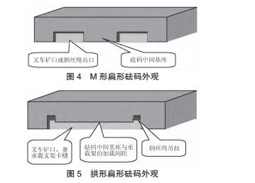 根據(jù)承載支架尺寸,兩種不同外觀的扁形砝碼分別為M形和拱形,其標(biāo)準(zhǔn)質(zhì)量均為1 t,M形尺寸約為:長(1.0 m)x 寬(0.70 m)x 高(0.25 m); 拱形尺寸約為:長(1.0 m)x寬(0.70 m)x高 (0.27 m);占地面積均為0.70 m2 (圖4、圖5)。