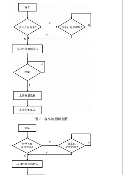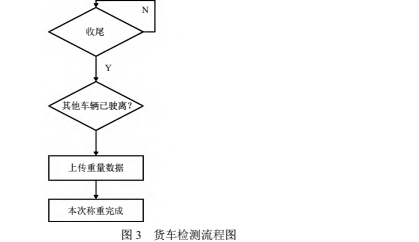 如圖 3 所示,當(dāng)車輛預(yù)讀天線檢測(cè)到通過車輛為貨車時(shí),若秤臺(tái)上無其他貨車,則前置欄桿抬起,車輛直接駛?cè)搿H舫优_(tái)上有其他貨車,則待該貨車完成稱重后,欄桿抬起車輛駛?cè)搿?br /> 以上流程中,除稱重結(jié)果需與車道計(jì)算機(jī)通信外,其余全部由稱重系統(tǒng)負(fù)責(zé)控制。