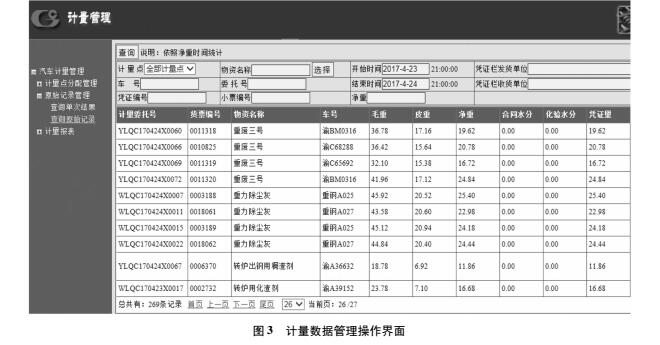 該分系統(tǒng)接收到計(jì)量任務(wù)后,計(jì)量人員通過界面視頻核對車輛信息,檢查計(jì)量委托及計(jì)量類型、收發(fā)貨單位等,確保信息準(zhǔn)確后保存數(shù)據(jù),數(shù)據(jù)包含車輛信息、視頻信息、稱重信息等,數(shù)據(jù)同步上傳至中心數(shù)據(jù)庫。